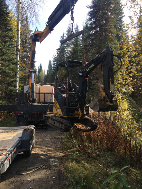 That’s his smallest, baby excavator. It had broken down in his narrow driveway through the forest, completely blocking it, and so of course it had to be lifted out before anyone could come home, or leave. You can't nudge an excavator out of the way with an SUV. One of those jobs that just cannot wait! So much for getting anything else done with the day.