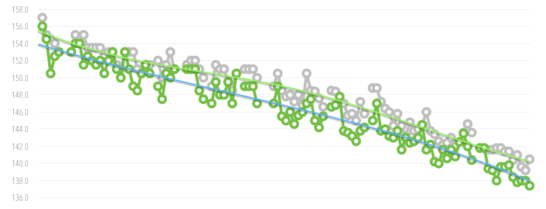 I got serious about getting back into shape about 150 days ago. I have lost about 25 pounds of fat and put on about 5-10 pounds of new muscle. That made a huge difference on a 5'3" skeleton. I’ve reclaimed two entire boxes of skinny clothes. My wife is trying not to be too thrilled. I feel better than I have in years, and I’m on good habit cruise control now: I believe I can keep it up (and sustainability was always the most important goal).