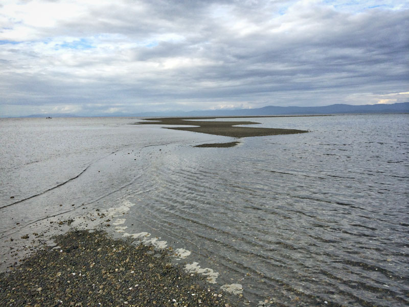 Another example: we took a walk out on a looooong, snakey peninsula of gravel bar exposed by the low tide. The tip was really way out there. Felt like we were hiking straight into the ocean!