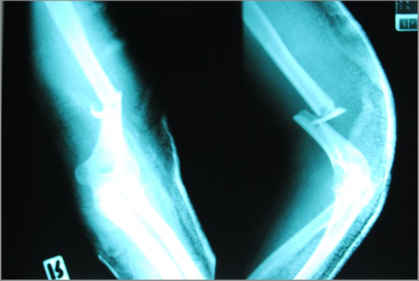 - A very nasty upper arm (humerus) fracture, with multiple jagged pieces. The sharp edges seriously threatened major nerves and arteries, and the surgeon later spoke to me with great intensity about how arduous a job the repair had been: hours of holding Amy’s arm as perfectly still as possible. At the end of it she had a long steel bar screwed into her upper arm with several screws.