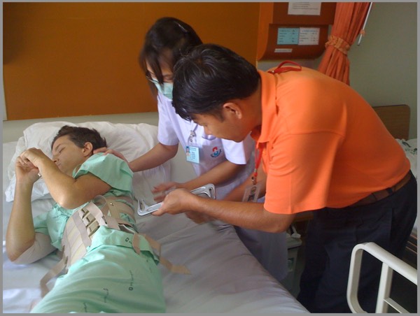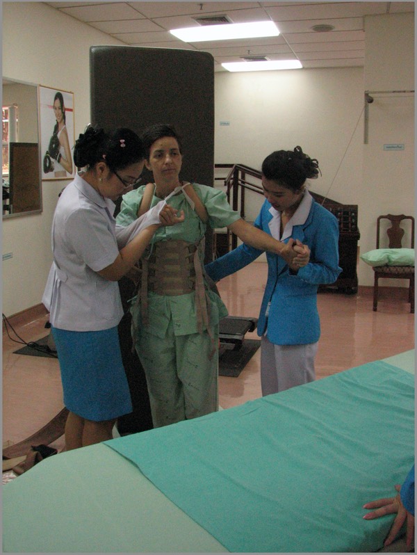 The transition to Thailand … still on spine board