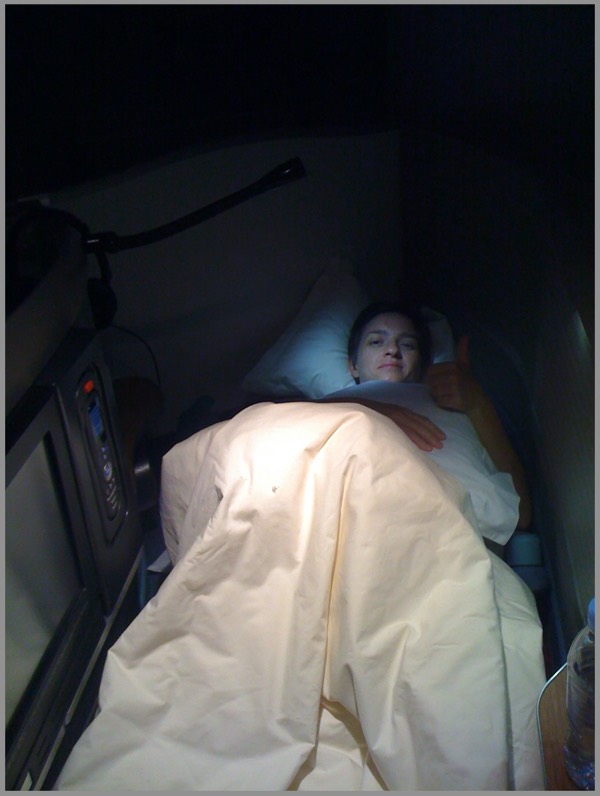 I didn’t get a first class seat — the insurer wasn’t about to pay for that, and I can’t even blame them — but Alex generously swapped with me for a couple hours, so that I could hang out with my wife, have a nap in the fully reclining seat, and experience air travel the way it was meant to be experienced.