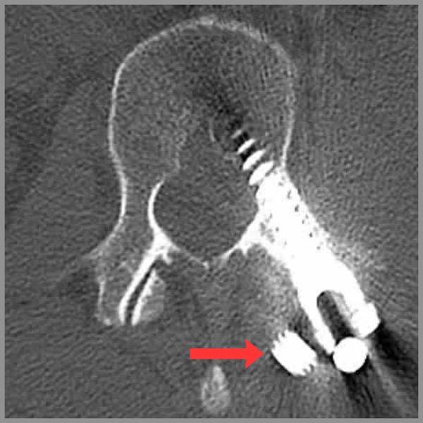 One of the bars had come out of its post socket. This was plainly visible on an MRI scan of her back — but missing from the radiologist’s report. I found it myself, staring at those magical black and white transverse slices of my wife’s back, which clearly revealed cross-sections of a screw (so unlike any anatomy!) floating in the wrong place, the end of the of one bar well out of place… and the other one on the verge of coming loose as well. I am proud of making that discovery, even though it is not really as amazing as it sounds. Certainly it’s a minor embarrassment for the radiologist, but mostly his attention was properly on my wife’s bones and spinal canal, not so much her implants.