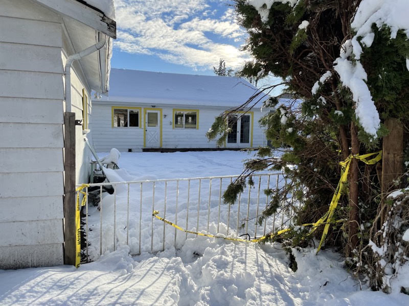 We saw no way to access the front of the house, and so we hiked all the way around to the back of the house via the alley, much like Amundsen trudging across Antarctica. We scrambled over a modest barrier and poked around in the back yard for a while, mostly looking for a way to access the front of the house where the birb was focusing all its escape efforts … but there was just no clear, safe path. Some stairs had been removed. I considered more scrambling, but the possibility of slipping/bashing/gashing there was a little too obvious.