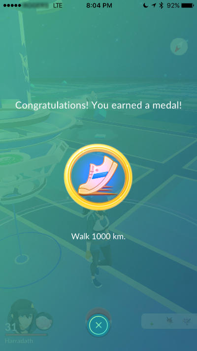 And I have now walked >1000km while playing Pokémon Go. I am a bit stunned.