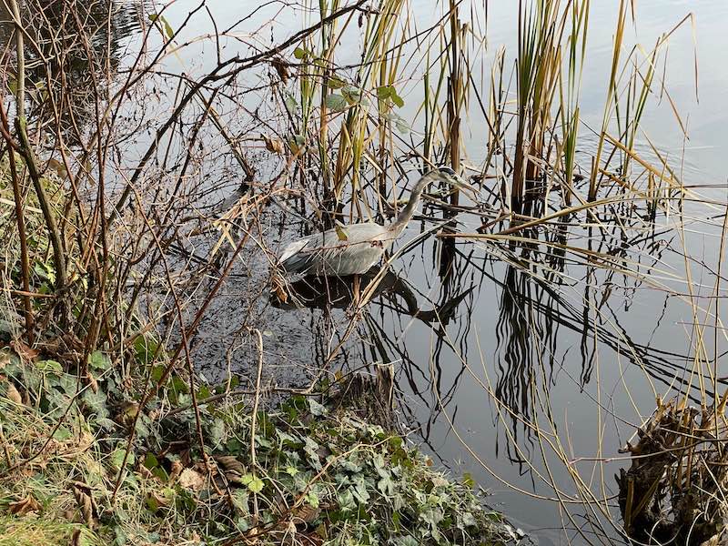 And then, just a couple minutes later, this heron. She was fishing about 20cm from the edge of the path beside Lost Lagoon in downtown Vancouver. And she caught a fish about 5 seconds after this shot! Just a wee teensy one.